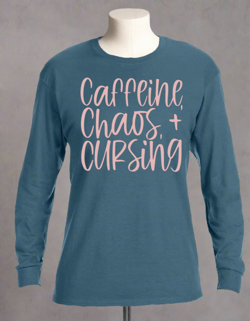 Caffeine, Chaos and Cursing Long Sleeve Tee