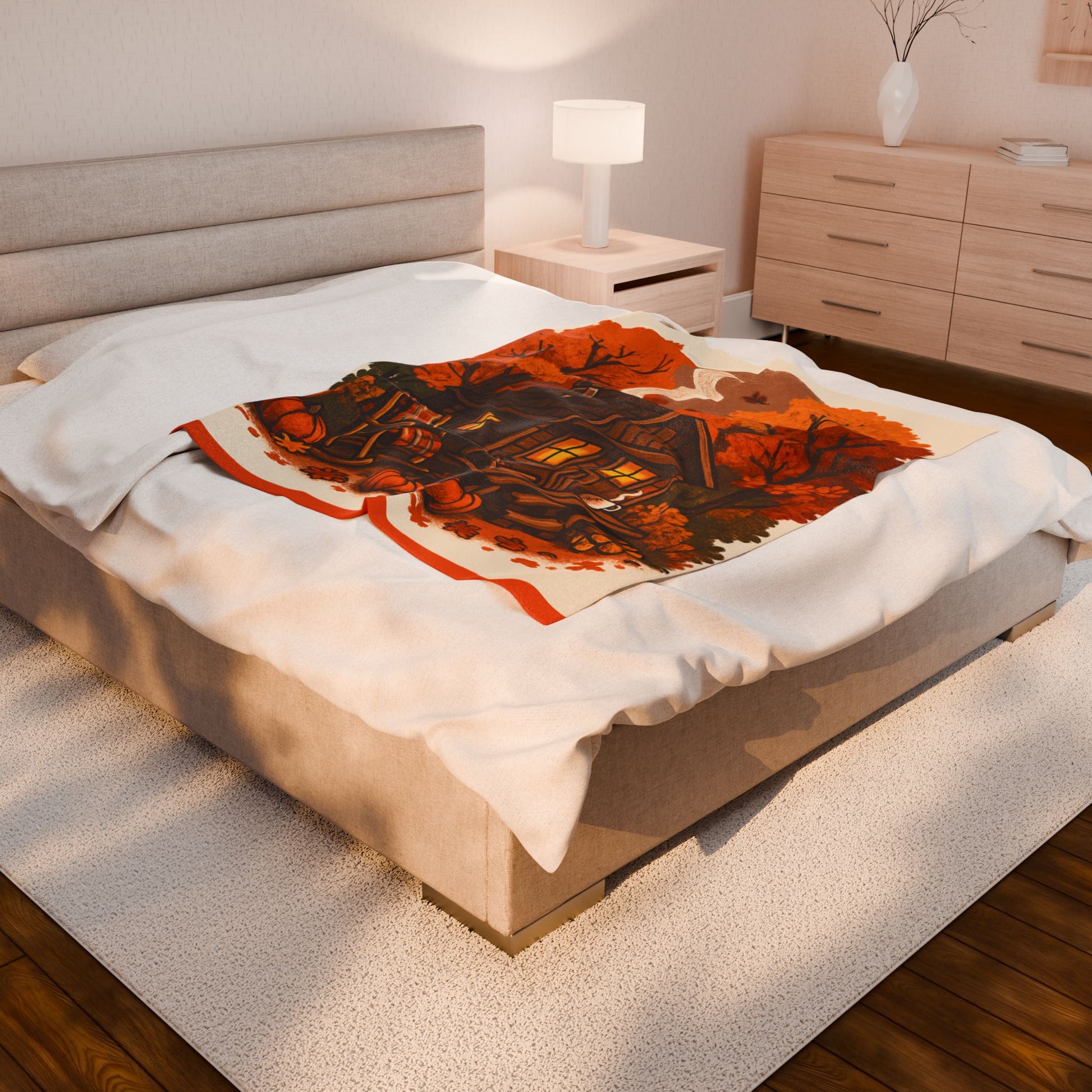 Experience the cozy embrace of our luxurious plush blanket, perfect for those chilly evenings spent indoors. With a captivating design that embraces autumn charm, this blanket brings warmth and style into any living space. It adds a welcoming touch to your home decor while providing soft comfort for snuggling up with a book or enjoying a movie night. Ideal for adults who appreciate quality, comfort, and design, this blanket is a thoughtful gift for occasions like housewarmings, Thanksgiving, birthdays, or just as a special treat for yourself during the colder seasons.