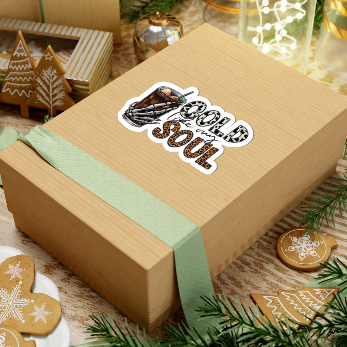 A cheeky, slightly dark sticker that reads “Cold like my Soul,” illustrated with a skeletal hand clutching an iced drink. Bold leopard and cow-print lettering pops against the glossy white border, giving it attitude and a touch of retro-grunge. Stick it on a laptop, water-resistant journal cover, or a bedroom mirror to announce your mood with humor and edge. The finish is glossy and vibrant, so the pattern and ink stay vivid indoors while the thin kiss-cut outline keeps application smooth and bubble-free.