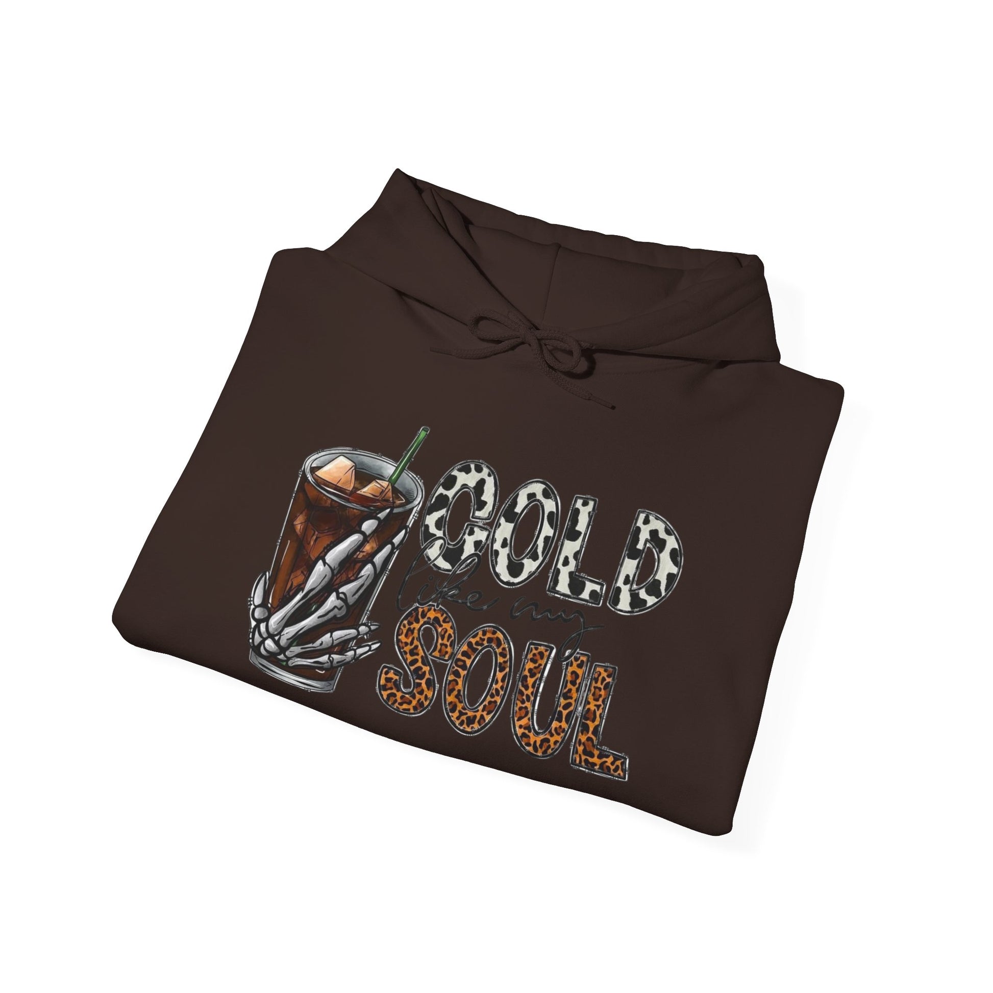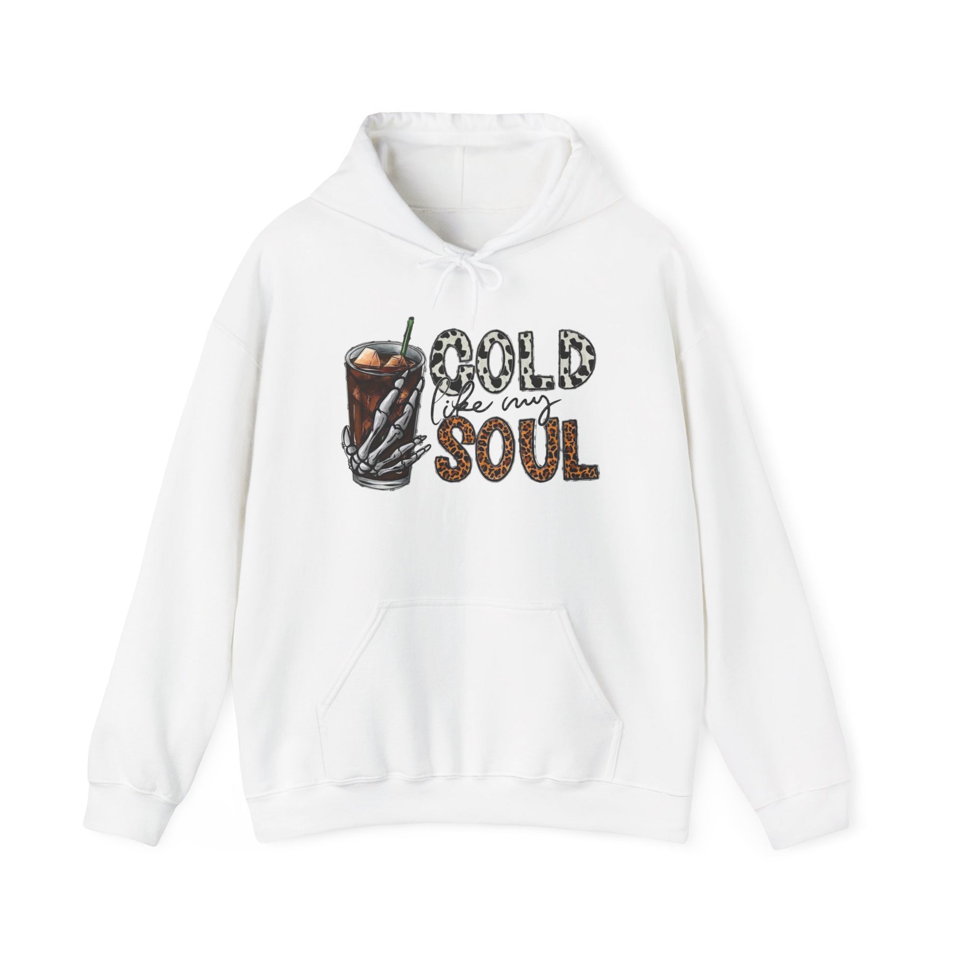 This cozy hooded sweatshirt carries a laid-back, slightly cheeky vibe — a soft white canvas printed with a rustic “Cold been my Soul” design and an illustrated iced drink. Wear it when you want warmth without fuss: the roomy kangaroo pocket for chilly hands, double-lined hood with color-matched drawcord for extra coverage, and a medium-heavy 50/50 cotton-poly blend that stays soft and holds print detail. It feels lived-in from the first wear and pairs easily with jeans, joggers, or flannel for slow-morning coffee runs, late-night drives, or relaxed hangouts at the lake house. Subtle embroidery or DTF sleeve options let you personalize placement if you want a smaller chest logo or decorative wrist accent.