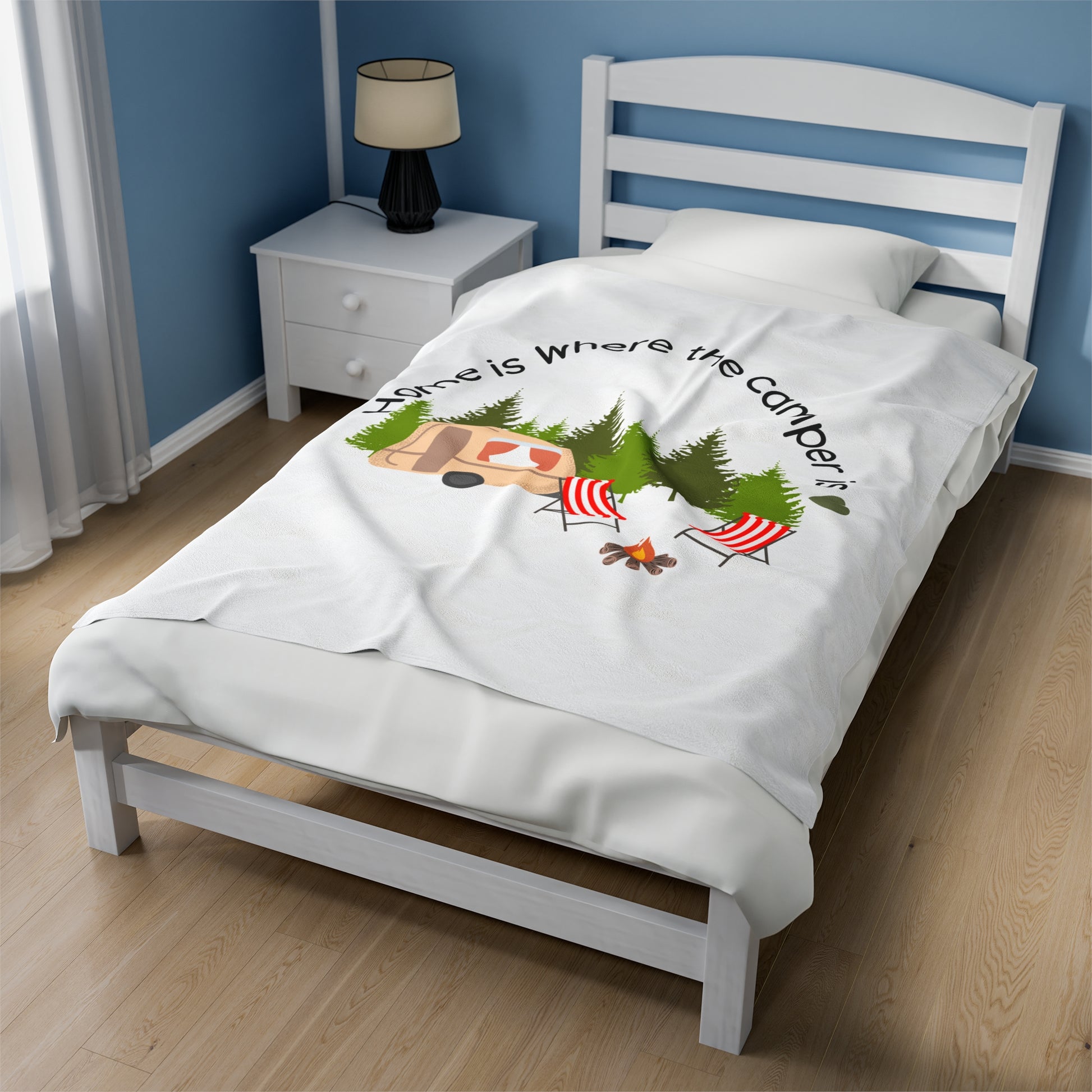 Create a cozy and warm atmosphere with this plush velveteen blanket. It is soft to touch and perfect for any cozy situation. Available size 50x60".